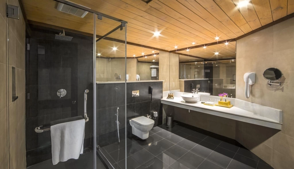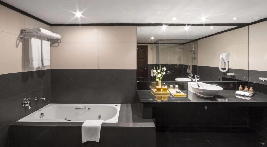 Ванна (кроме Deluxe), джакузи (только в Penthouse Suite и Royal Suite), душ, фен, халат и тапочки, (только в номерах категории Suite), CD/DVD-проигрыватель (в категориях Suite), телевизор, кондиционер, Wi-Fi (бесплатно), сейф, телефон, мини-бар (платно), набор для приготовления чая/кофе, утюг и гладильная доска (по запросу), балкон или терраса, уборка номера: ежедневно, room service: круглосуточно.