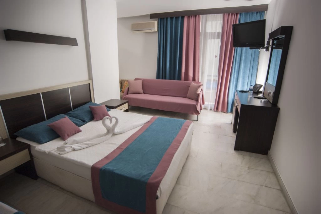 Отель расположен через дорогу от берега Средиземного моря в городке Тосмура, в 5 километрах от центра Алании. К услугам гостей бассейн, ресторан и бары, а так же услуги для детей. Отель подойдёт для семейного отдыха.