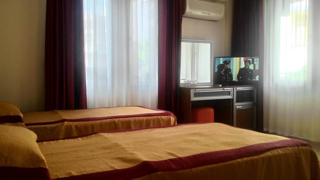 Индивидуальный кондиционер, балкон (не во всех номерах), телевизор, спутниковое ТВ, телефон (платно), W-fi (бесплатно), мини-бар (пустой), набор для приготовления чая/ кофе, ванная комната с душем, фен. Уборка номеров (1 раз в 3 дня), смена постельного белья (1 раз в 3 дня), смена полотенец (1 раз в 3 дня).