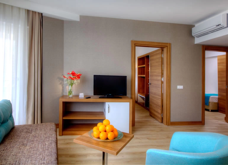 Ванная комната (душевая кабинка), санузел, фен, прямая телефонная линия, мини-бар, арендуемый сейф, Wi-Fi, спутниковое ТВ и сплит-кондиционер. Номера категории Стандарт не имеют балкона, все семейные номера оснащены балконом.