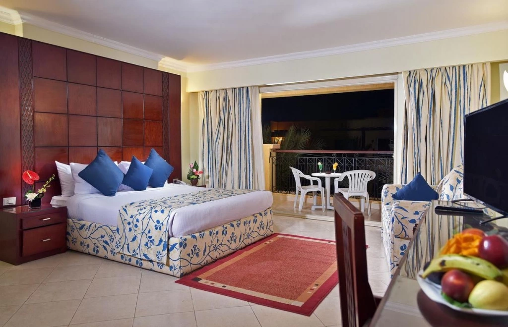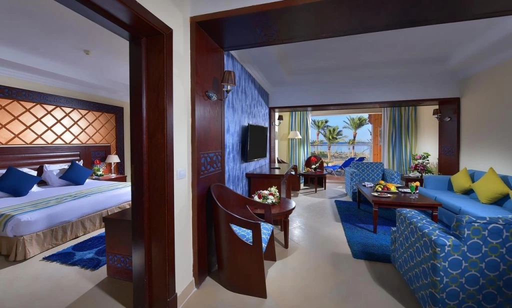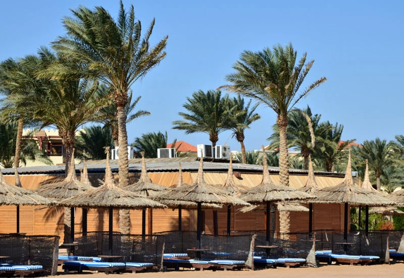 В 8 км от аэропорта, в 20 км от бухты Naama Bay, в районе Nabq Bay, на самом берегу моря.