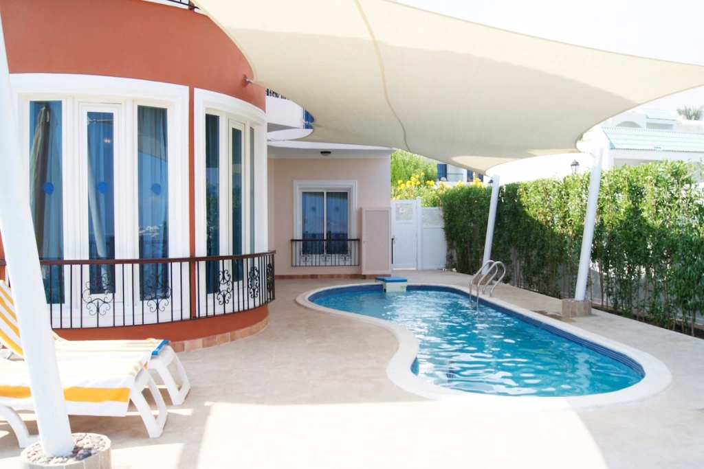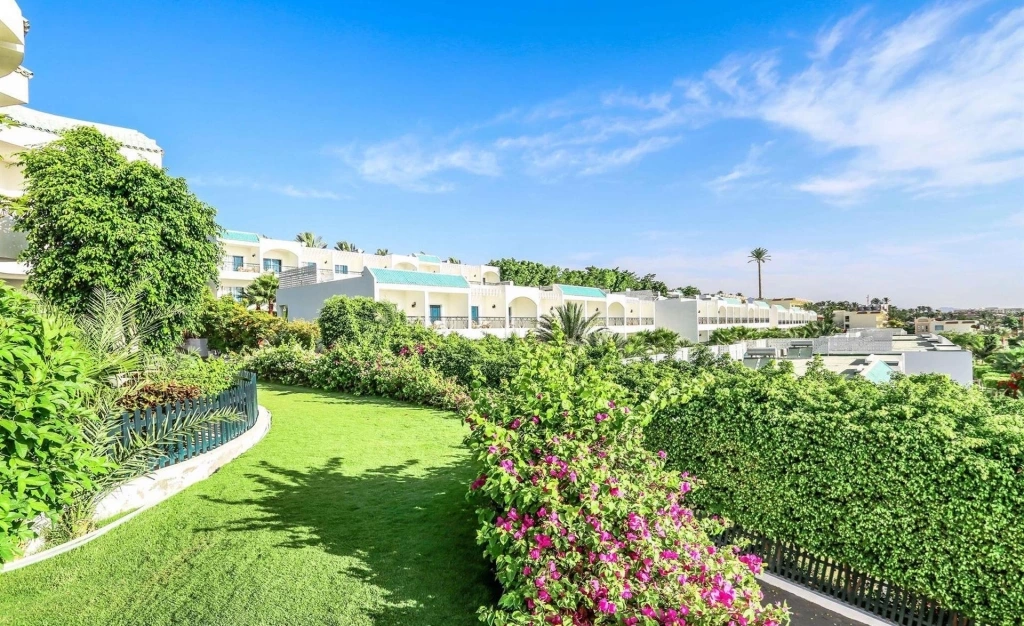 В 5 км от аэропорта Шарм-эль-Шейх, в 7 км от бухты Naama Bay, в районе Sharks Bay, на берегу моря.
