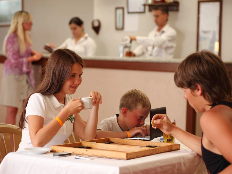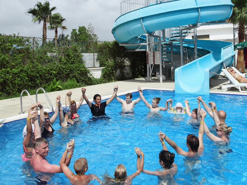 1 водна гірка для дорослих, дартс безкоштовно, аквааеробіка безкоштовно, волейбол на пляжі безкоштовно, водні види спорту платно.