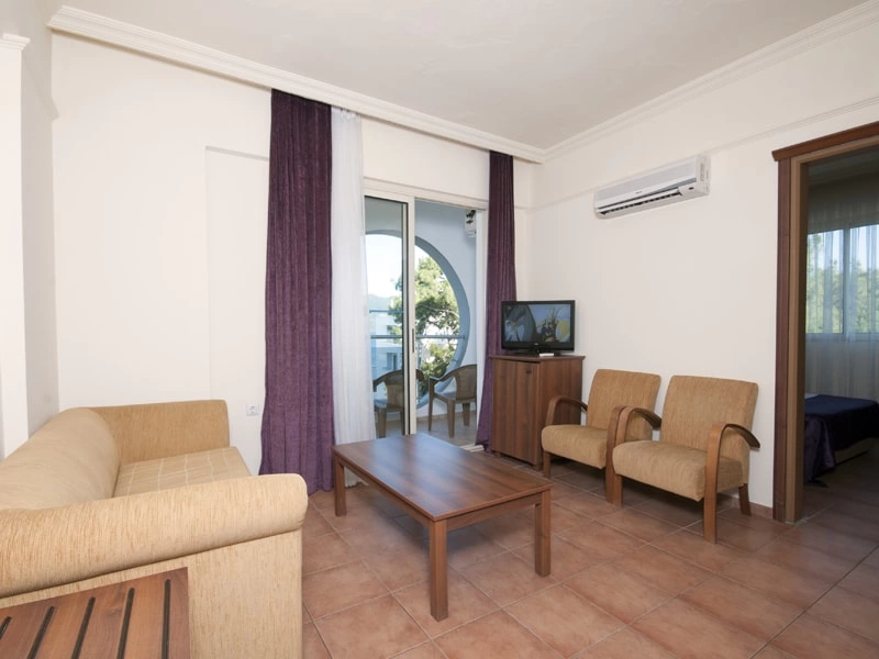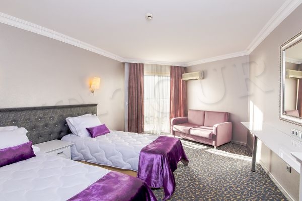 Сплит-кондиционер, прямой телефон (платно), спутниковое телевидение, сейф (платно), мини-бар (соки и вода — только в день заезда бесплатно), ванная комната, фен, балкон. Уборка номера: ежедневно, смена полотенец и постельного белья: каждый третий день, room service (платно).