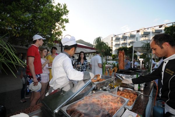 Цілодобова стійка реєстрації гостей, камера зберігання багажу, магазин, 1 конференц-зал (на 80 осіб), 2 відкритих басейну: головний басейн для дорослих 500 м2 і басейн з гірками 75 м2 (2 водні гірки), біля басейну шезлонги, парасольки і рушники надаються безкоштовно. Ресторани та бари: Головний ресторан — шведський стіл, сніданок (07:00-10:00), о
