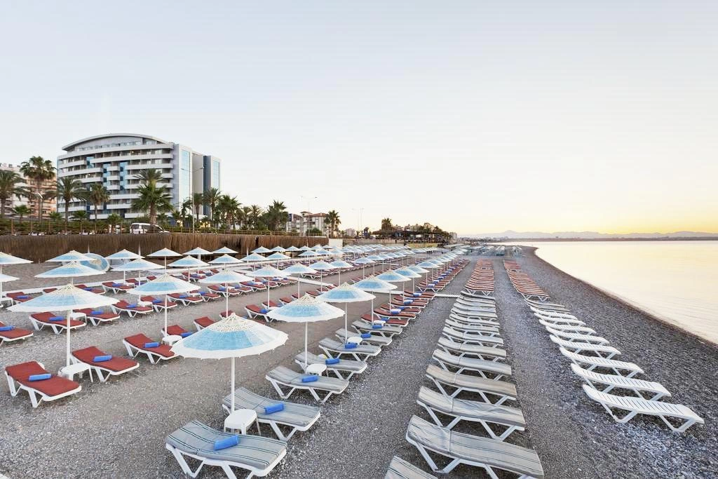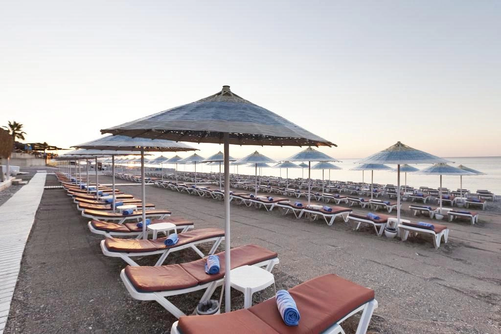 Між готелем і пляжем проходить дорога, є підземний перехід. Протяжність пляжу — 150 м. Вхід в море: галька. Бар на пляжі: безкоштовно.