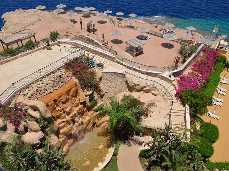 В 18 км от аэропорта г. Шарм-эль-Шейх, 3 км от Наама Бей.