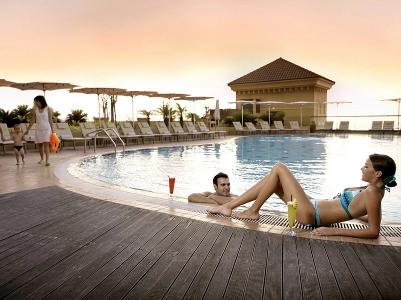 3 ресторани (2 A la Carte), 4 конференц-зали, 2 бари, магазини, басейн з режимом температурного контролю.