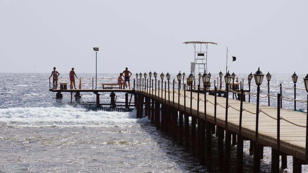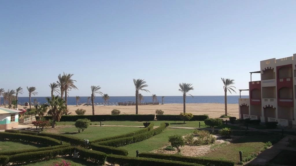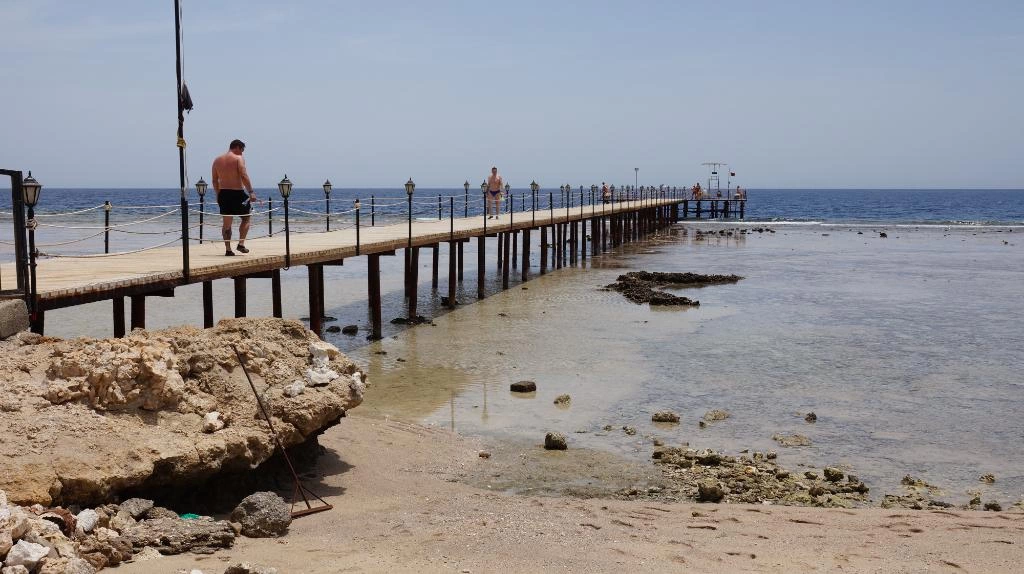 До пляжу 450 метрів. Довжина пляжної смуги 400 метрів, пірс — 100 м. Вхід в море — корали.