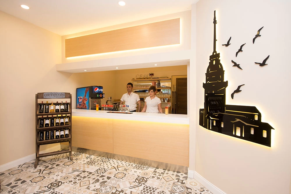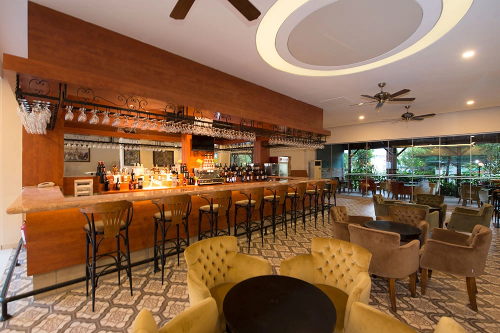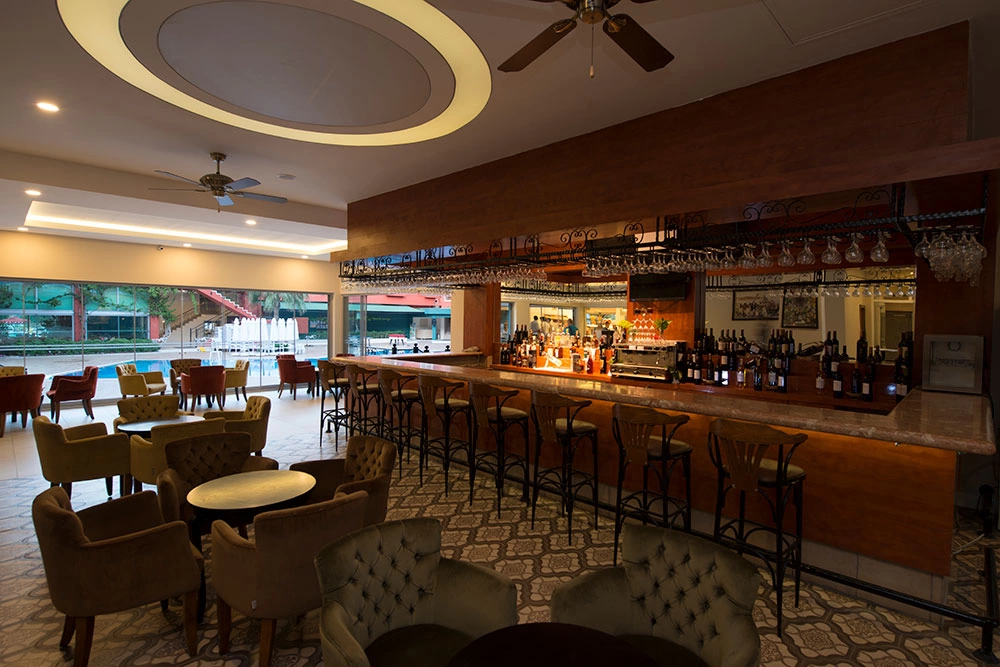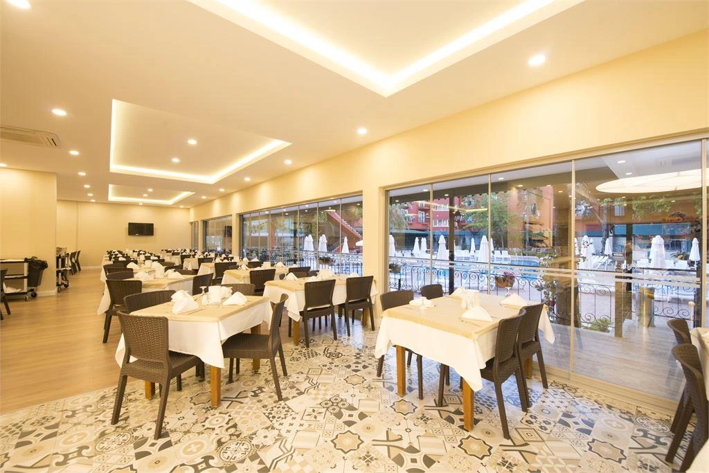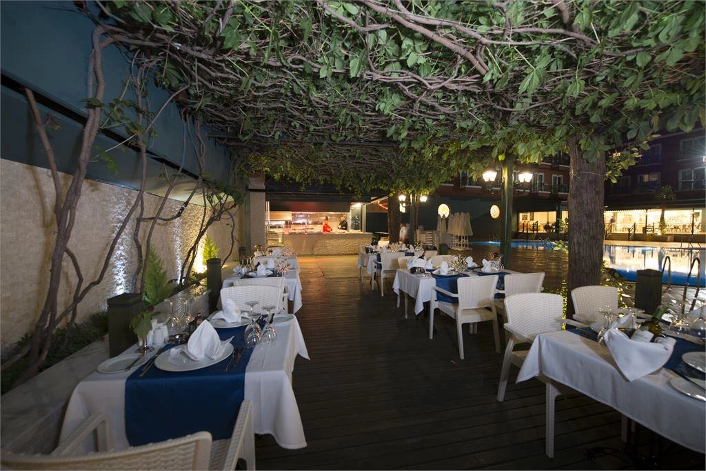 Сніданок 07:30-09:30, пізній сніданок 09:30-10:30, обід 12:30-14:00, закуски (у Снек барі) 11:00-17:00, вечеря 19:00-21:00. Шведський стіл. Ресторан середземноморської кухні, платно, 18:30-21:00. Бар біля басейну: працює з 11:00 до 19:00. Бар на терасі: працює з 21:00 до 23:00. Бар в ресторані працює з 19:00 до 21:00. 1 відкритий басейн з пріс