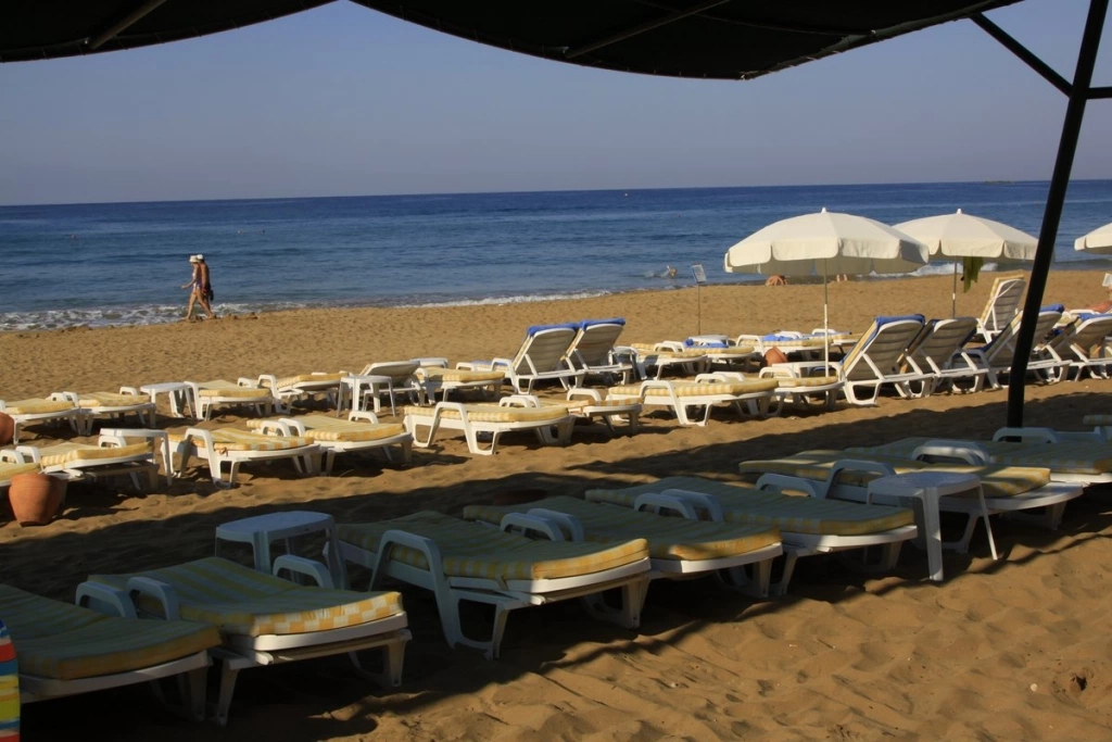 Власний, піщаний, пологий вхід в море, довжина 1200 м (включаючи загальний пляж готелів TT Hotels Pegasos Club і TT Hotels Pegasos Royal), є пірс. Готель пропонує своїм гостям безкоштовно надувні, водні атракціони, які розташовуються в морі поряд з понтоном.
