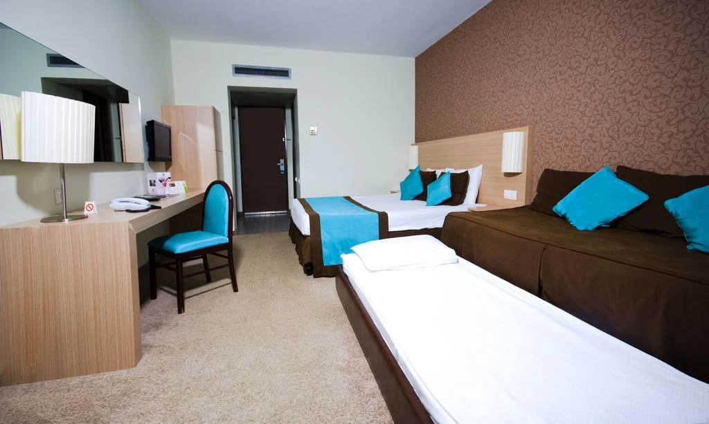 В номерах представлено: центральный кондиционер, мини-бар (безалкогольные напитки, ежедневно), спутниковое ТВ с российскими каналами, музыкальные каналы, прямой телефон, интернет (платно), душ, фен, сейф (платно).