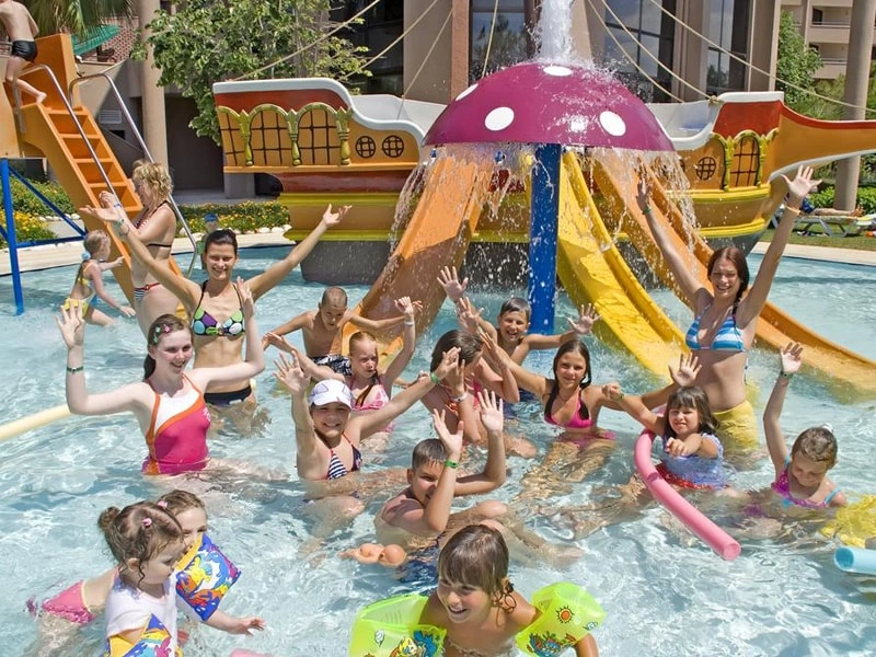 Секції для дітей в 2 басейни (1 критий, 1 з водними гірками, 2 водні гірки), дитячий клуб (4-12 років), міні-диско, 2 дитячі майданчики (одна з них на пляжі).