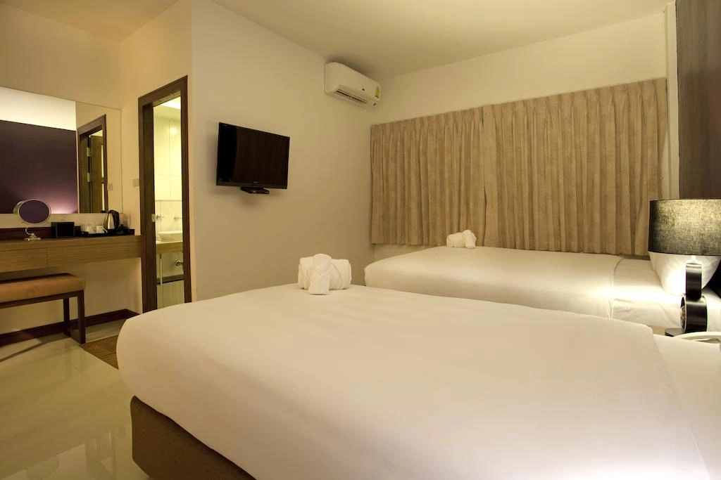Кондиционер, телевизором с плоским экраном и кабельными/спутниковыми каналами, телефон, Wi-Fi (бесплатно), сейф на ресепшен (под депозит), мини-холодильник, 2 бут.воды ежедневно бесплатно, электрический чайник, набор для приготовления чая/кофе, душ (с туалетными принадлежностями), фен, балкон (20 номеров), room service.