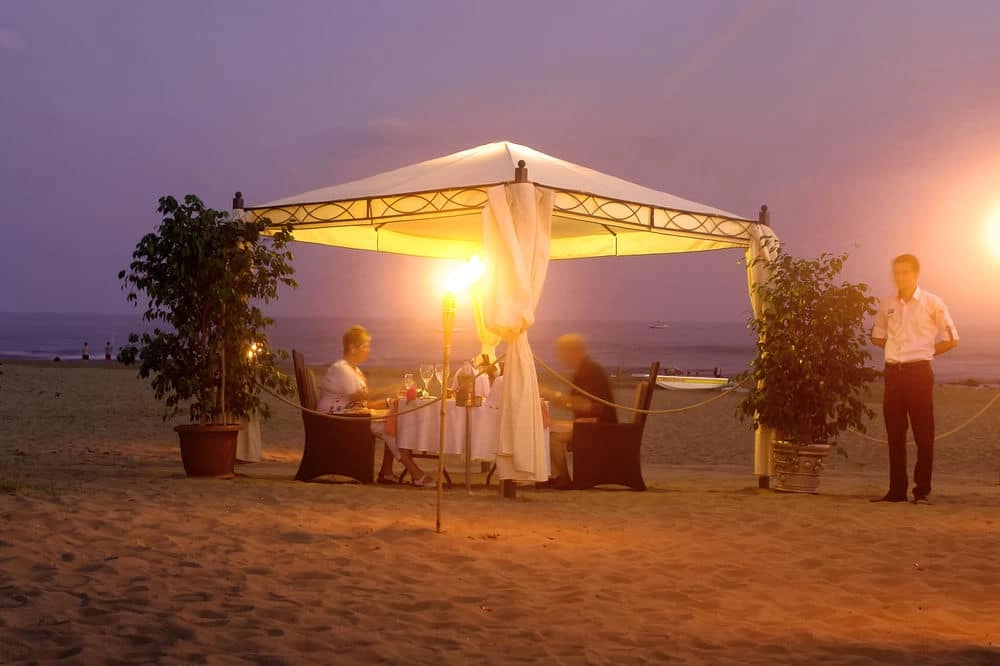 Пляж поруч з готелем. Захід в море пологий, пісок. Кабіни для переодягання, душ, рятувальники. Пірс з павільйонами.