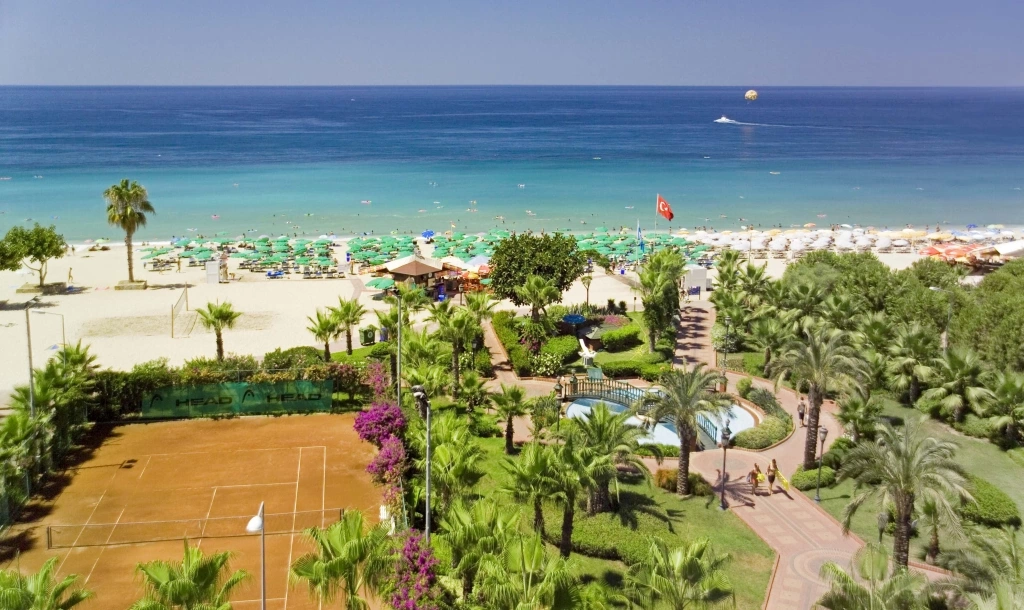 Готель розташований в місті Аланія поруч з пляжем Клеопатра. Складається з трьох блоків. Першу будівлю готелю було побудовано в 1986 році, другу — у 1989 році, третю — в 2011 році.