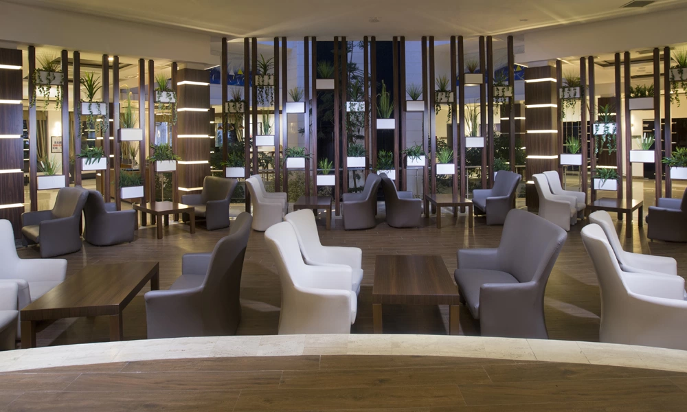 Сніданок з 07:00-10:00, пізній сніданок з 10:00-11:00, обід з 12:30-14:00, вечеря з 19:00-21:00, нічні закуски з 23:30-00:30. Шведський стіл. Турецький ресторан, Італійський ресторан. Ресторани працюють з 19:00-21:00 (платно). Лобі-бар: 10:00-24:00. Бар на пляжі: 10:00-17:00. Бар біля басейну: 10:00-18:30 і 20:00-24:00. Диско-бар: платно, розташо