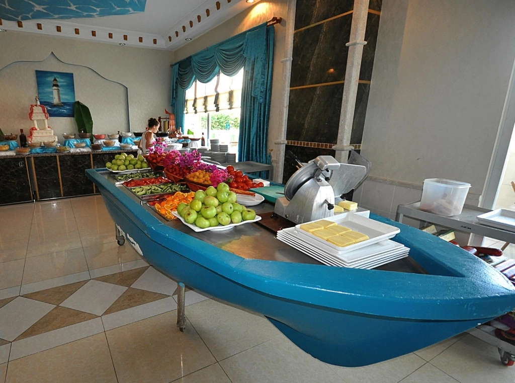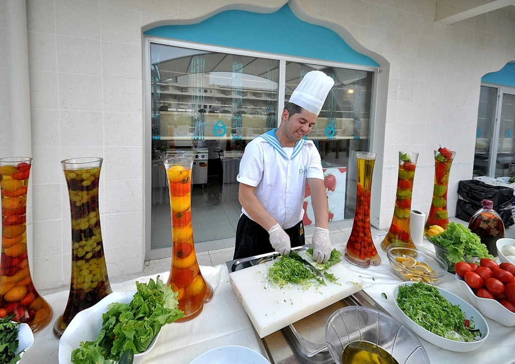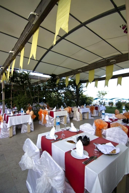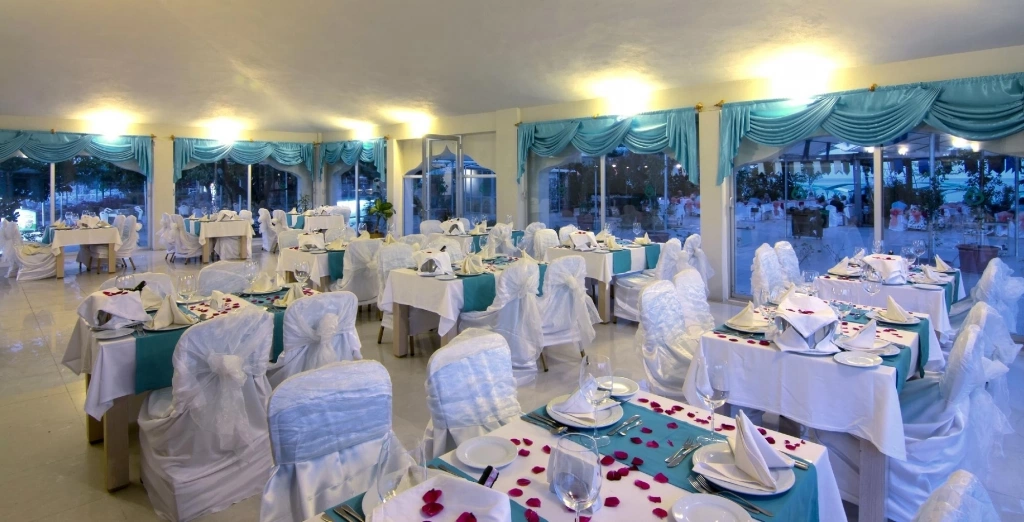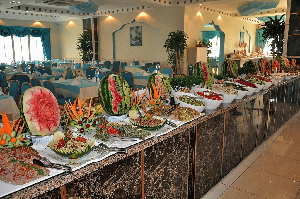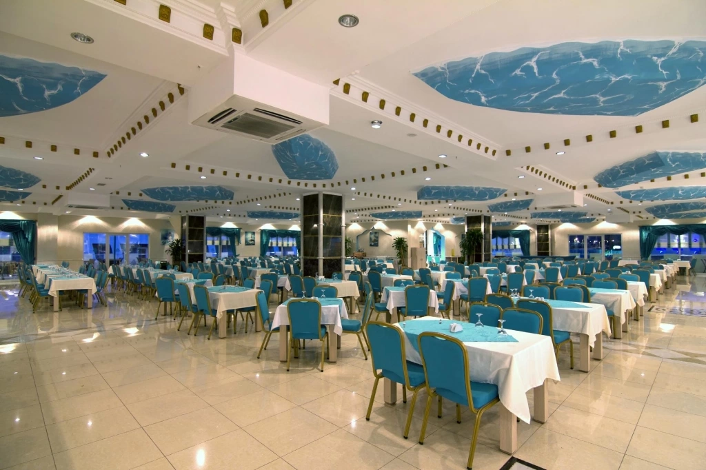 Цілодобова стійка реєстрації гостей, Wi-Fi в лобі, безкоштовно, room service: цілодобово, платно, дієтичне і вегетаріанське меню, 5 ресторанів — 1 основний, 4 a la carte: турецький, рибний, італійський, китайський (за попереднім записом — плата за резервацію), 5 барів, 4 конференц-зали, магазини, 4 відкритих басейну, біля басейну парасольки, шезлон