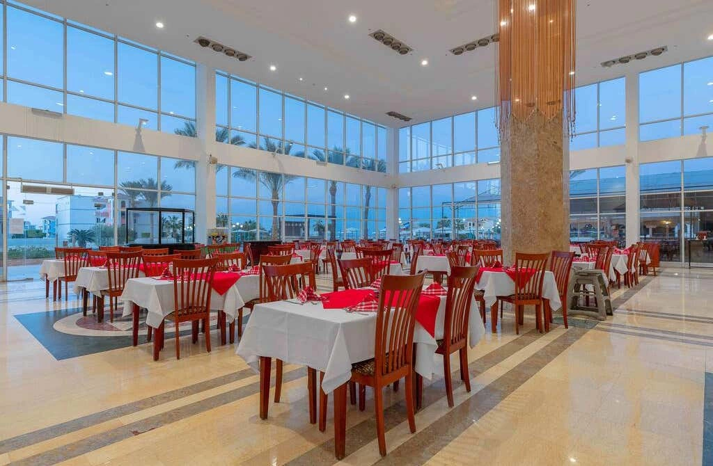 Ресторани: Piazza Grande – міжнародна кухня. Bella Vista – легкі закуски і прохолодні напої. А la Сarte Marco Polo – італійська кухня (18:30 – 21:30/19:00 – 22:00) – потрібна попередня резервація. А la Сarte Layalina – східна кухня (18:30 – 21:30/19:00 – 22:00) – потрібна попередня резервація. А la Сarte El Safina – рибний ресторан (19:00 – 22:00)
