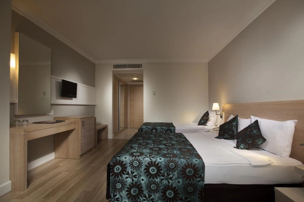 В номерах представлено: центральный кондиционер (работает в зависимости от погодных условий), мини-бар (безалкогольные напитки в день заезда, ежедневное пополнение – только вода), эл.чайник, спутниковое ТВ с русским каналам, прямой телефон, душ, фен, тапочки, халаты (платно), сейф (платно), балкон.