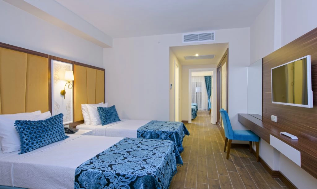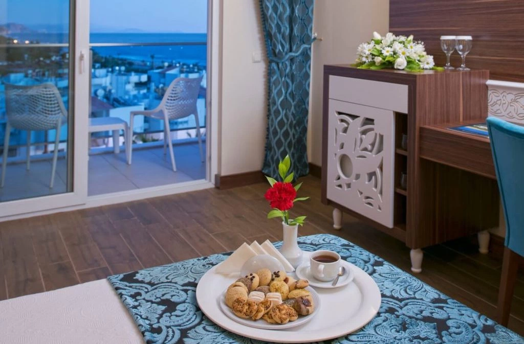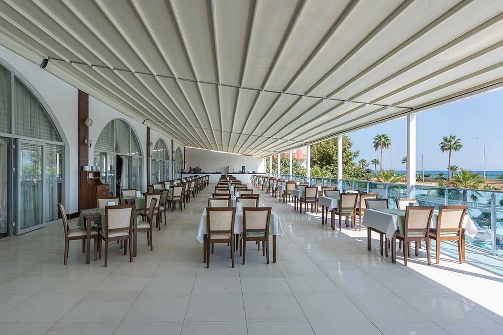Розташований в 108 км від аеропорту м Анталья, в 1 км від центру Конакли, в 90 м від власного пляжу, до якого можна дістатися по підземному переходу.
