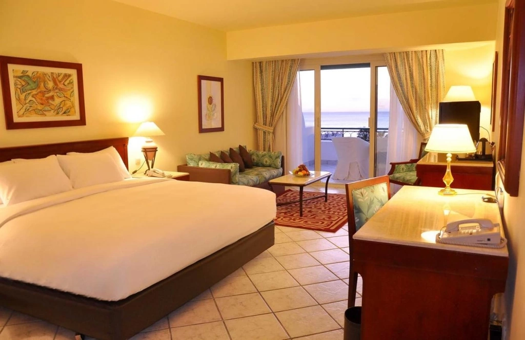 4 ресторани (2 a la carte; основний ресторан – шведський стіл; італійська кухня, арабська кухня, вечері в бедуїнських традиціях), 10 барів, 5 відкритих басейнів (1 з підігрівом в зимовий період, 2 басейни з морською водою, басейн Chillax з прісною водою в зону даного басейну не допускаються гості віком до 16 років), магазини, автобус до центру міст