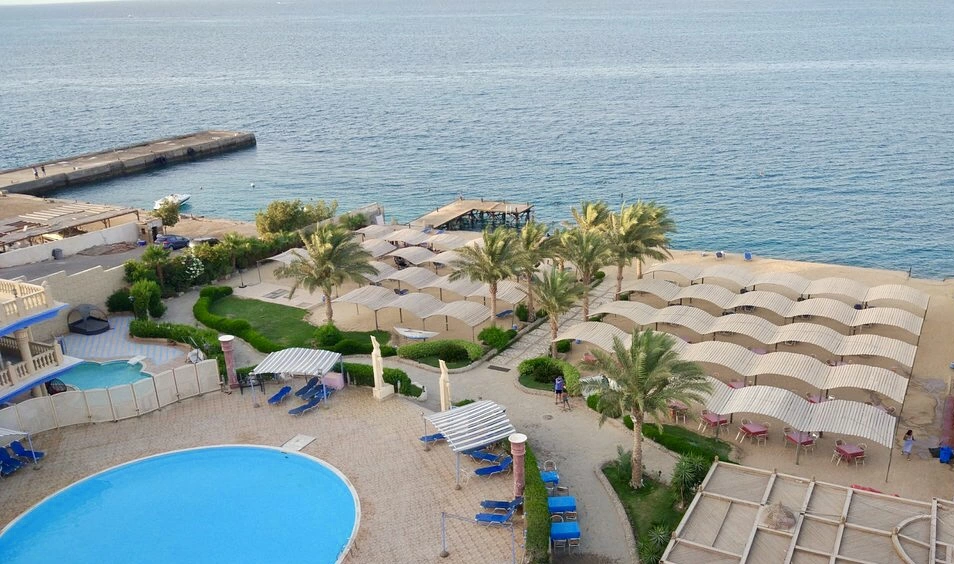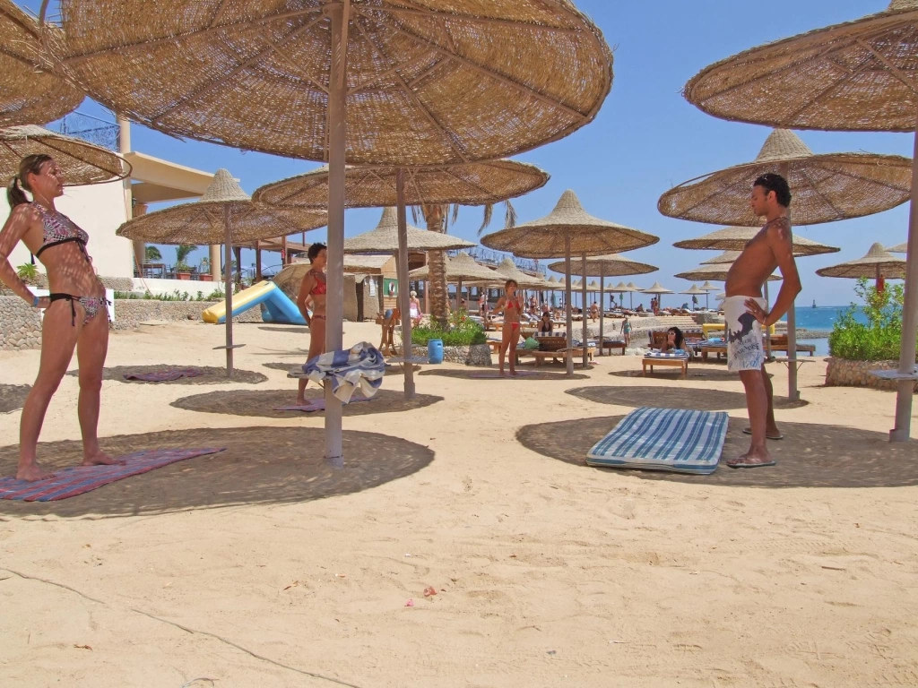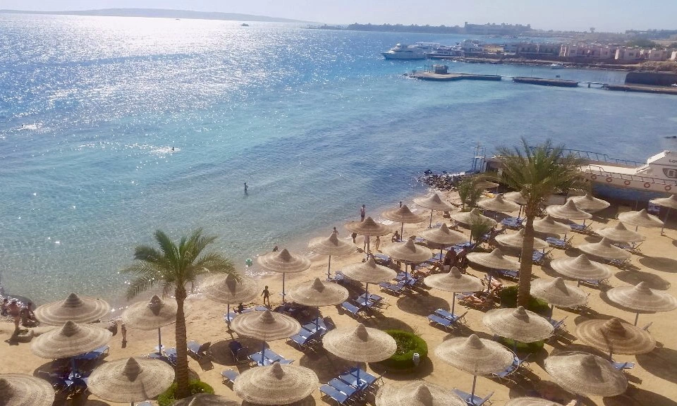 Власний пляж-платформа. Туристи можуть користуватися пляжем готелю King Tut Resort. Рекомендується спеціальне взуття. Довжина — 120 м.