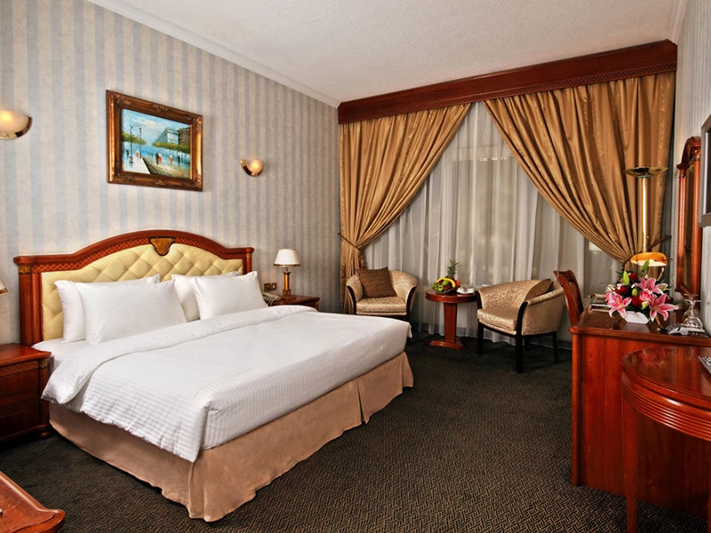Ванная комната с ванной, фен, туалетные принадлежности, центральный кондиционер, телевизор с плоским экраном, спутниковое телевидение, сейф (бесплатно), Wi-Fi (бесплатно), телефон, письменный стол, мини-бар (платно), электрочайник, утюг и гладильная доска (бесплатно, по запросу). Уборка номера: ежедневно, смена белья: по запросу, room service (платно), услуга звонок-будильник.