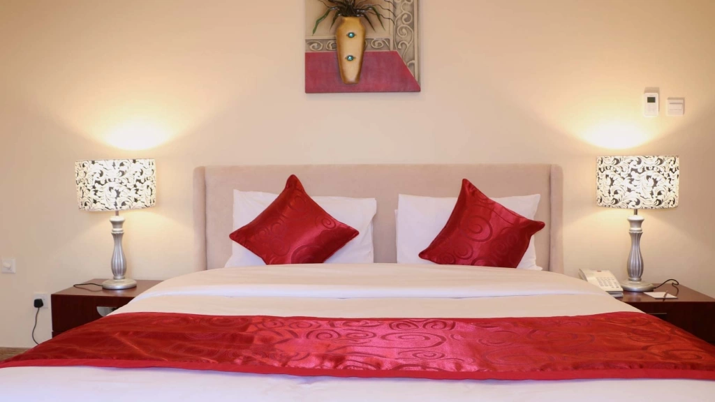 Ванная комната, фен, туалетные принадлежности, тапочки (бесплатно, по запросу), индивидуальный кондиционер, LCD-телевизор со спутниковыми каналами, Wi Fi (бесплатно), сейф (бесплатно), мини-бар (платно), набор для приготовления чая и кофе (бесплатно, по заезду), телефон (платно), утюг и гладильная доска (по запросу, бесплатно), балкон (не во всех номерах). Уборка номера: ежедневно, смена белья: ежедневно, room service: круглосуточно (платно).