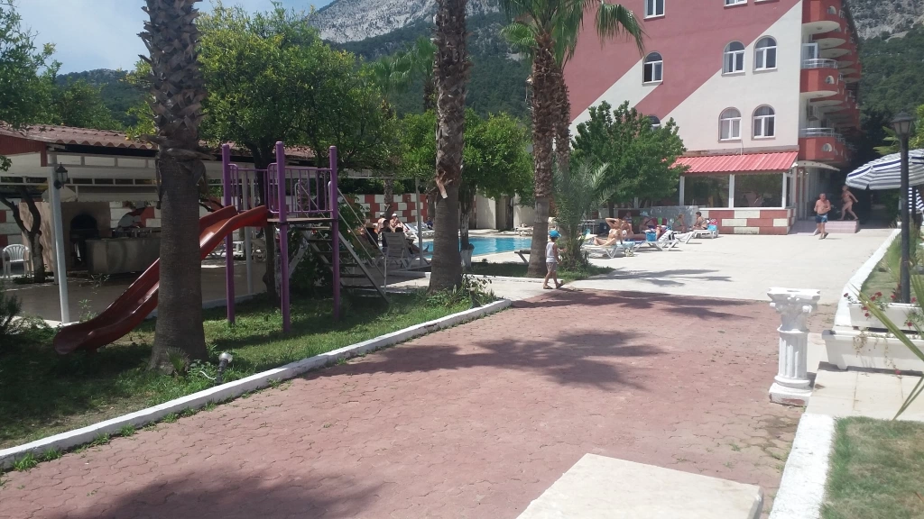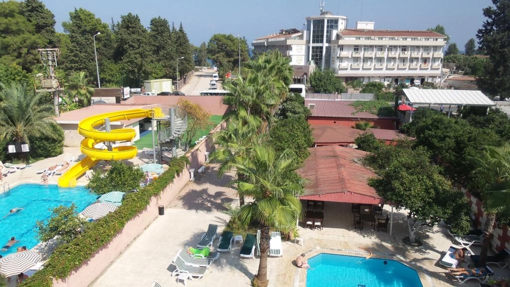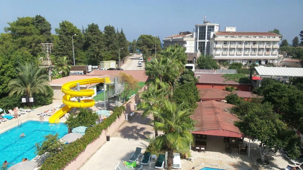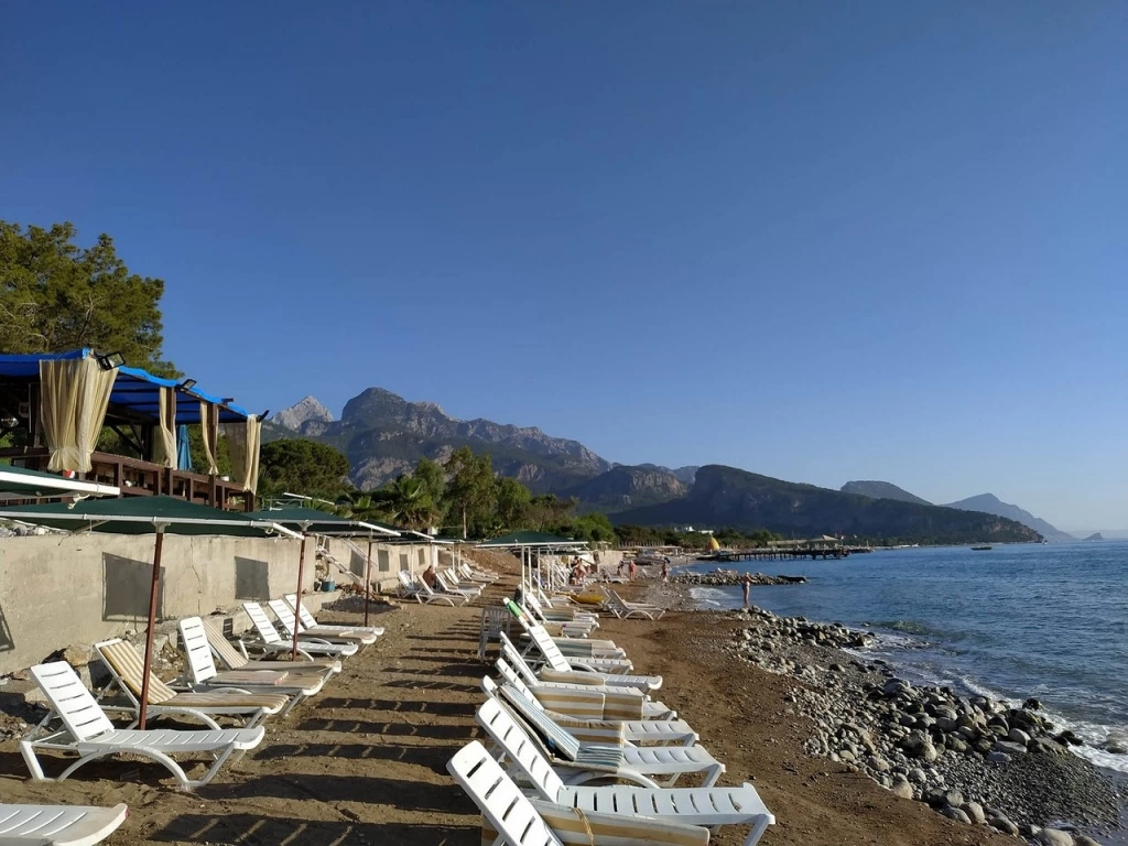 В 40 км от аэропорта г. Анталья, 18 км от г. Кемер, в п. Бельдиби.