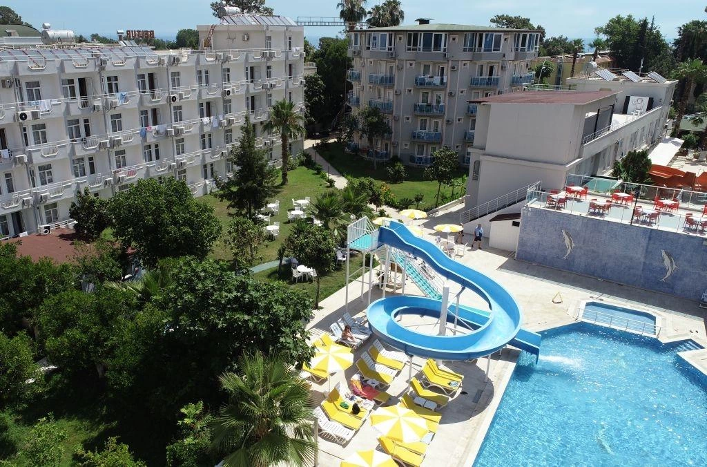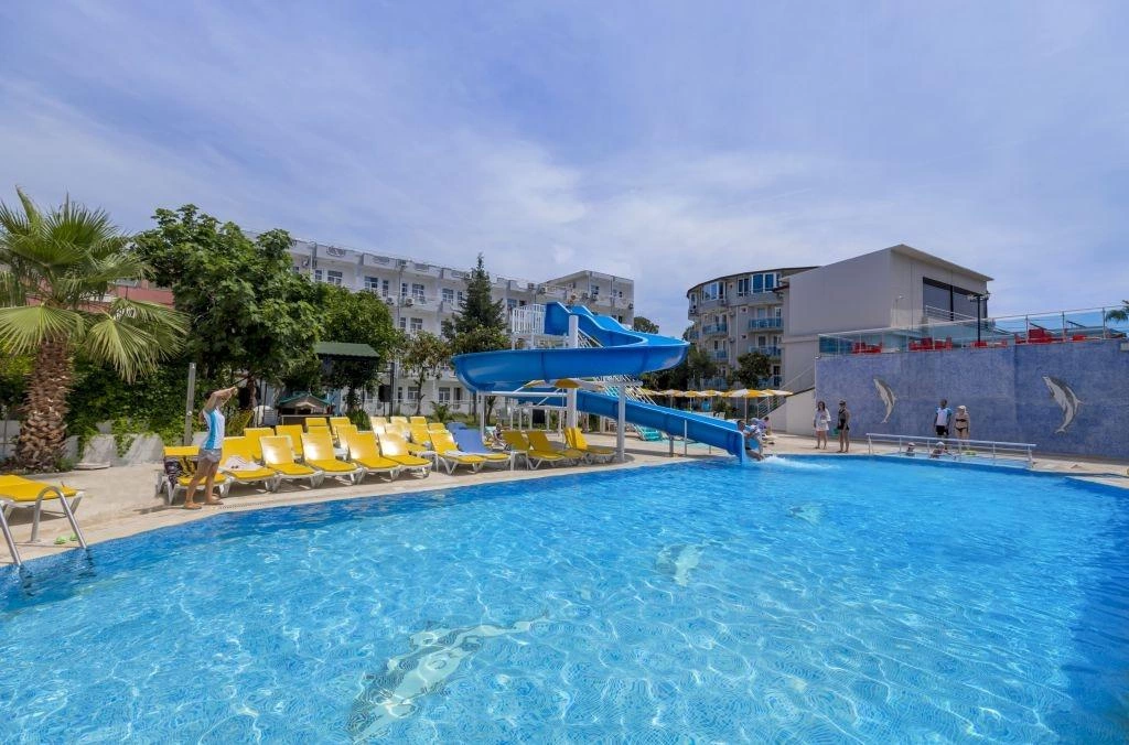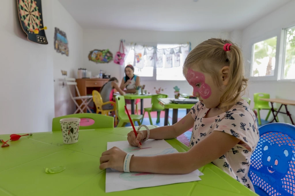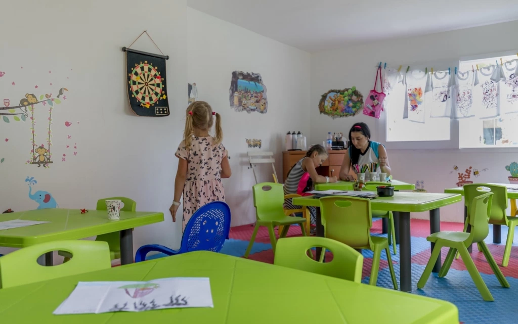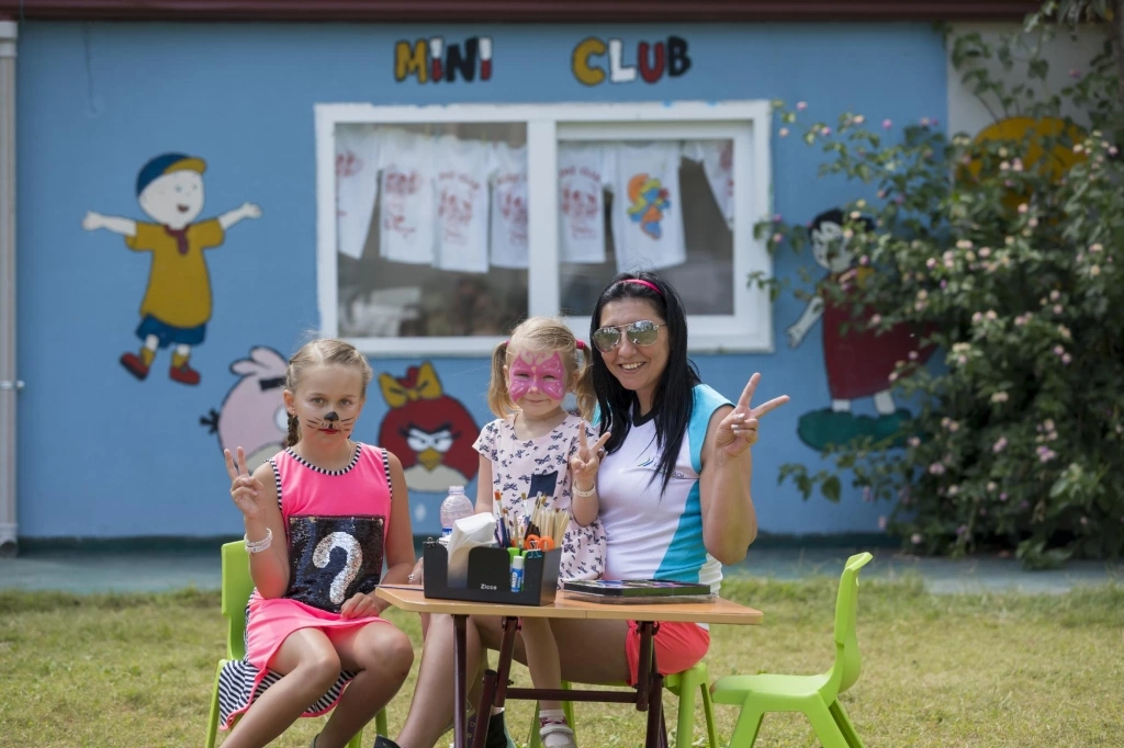 Дитячий відкритий басейн — 20 м2, міні-клуб для дітей 4-12 років, години роботи 10:00-12:00 і 14:30-17:00.