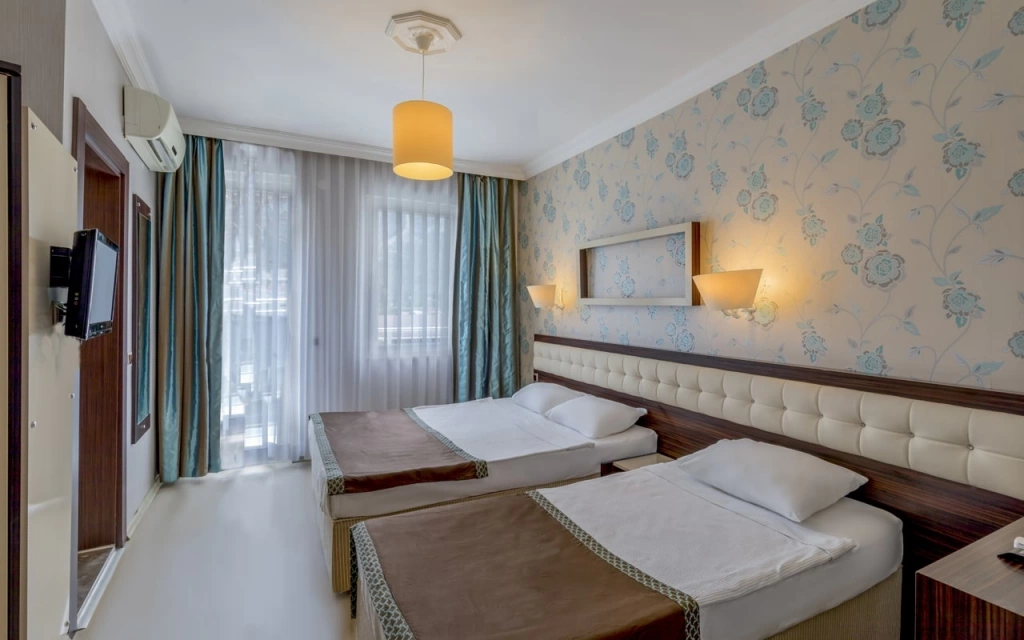 Сплит кондиционер, сейф (платно), телевизор, спутниковое ТВ, Wi-Fi (платно), телефон (платно), мини-бар пустой (бесплатно), ванная комната с душем, фен (бесплатно), балкон (не везде). Уборка в номере: ежедневно, смена белья: два раза в неделю.