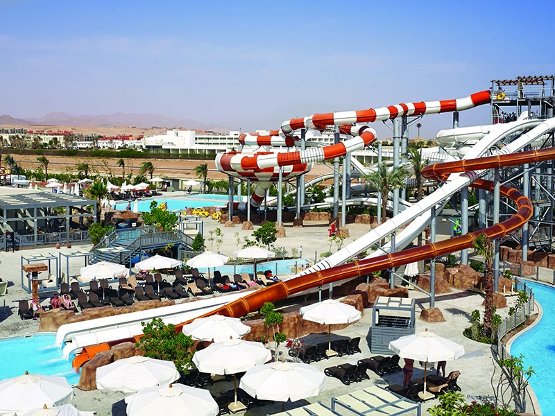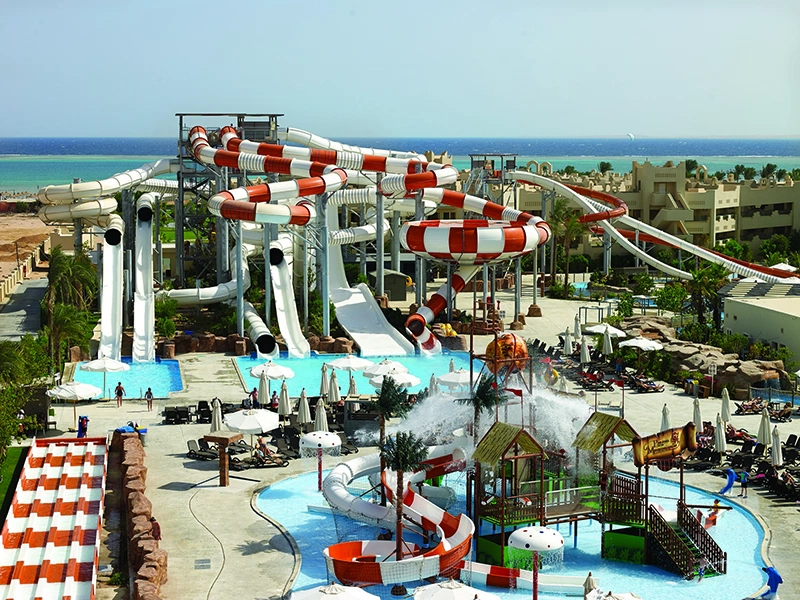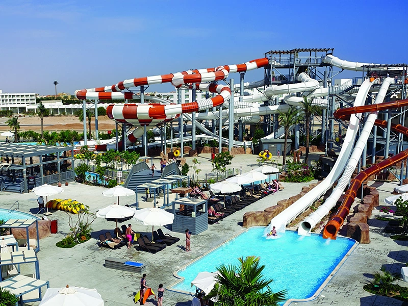 В аквапарку 21 гірка: 14 гірок для дорослих, 7 гір і водних атракціонів для дітей, аквааеробіка, волейбольний майданчик на пляжі, дартс, вечірні шоу, анімація, тенісний корт в спортивній зоні (оренда обладнання та освітлення платно), футбольне поле у спортивній зоні (освітлення у вечірній час платно), дайвінг центр і центр водних видів спорту — пла