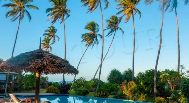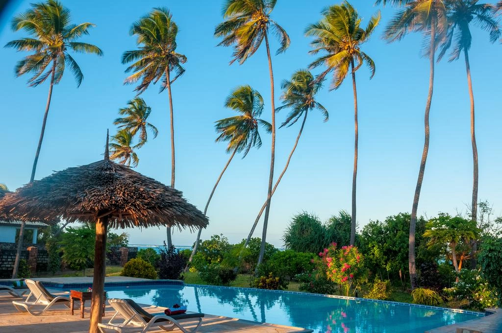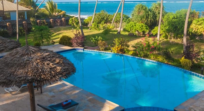 Відкритий басейн з терасою для засмаги, сад, загальний лаундж / вітальня з телевізором.