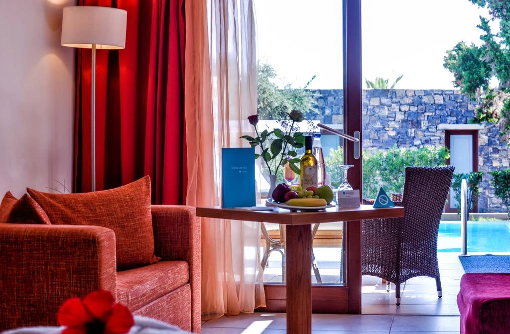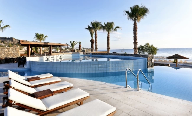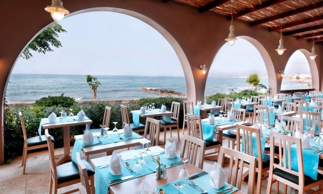 До послуг гостей 2 ресторани і спа-центр з критим басейном. У головному ресторані готелю на сніданок, обід і вечерю сервірується «шведський стіл», у меню якого входять різноманітні страви критської кухні. У ресторані з обслуговуванням по меню можна замовити страви середземноморської кухні, вегетаріанські страви та спеціальні страви дієтичного меню.