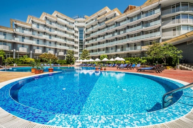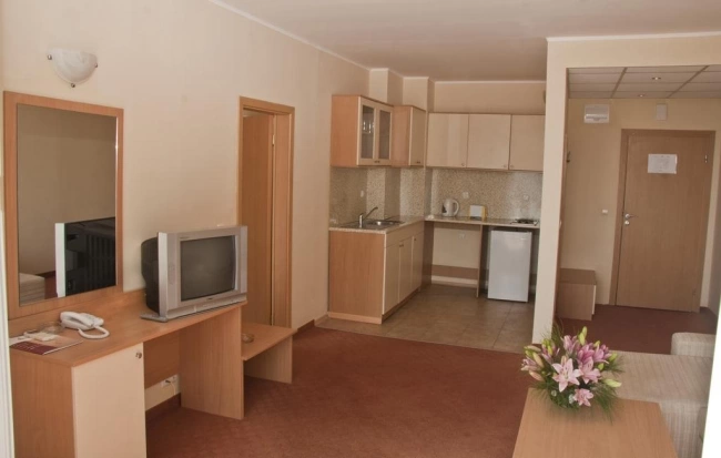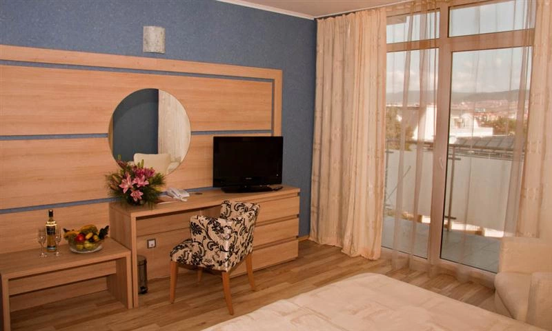 Отель находится всего в 200 метрах от центра курорта Солнечный. Аквапарк Экшн находится всего в 500 метрах от отеля. Расстояние от отеля Perla до остановки местных автобусов составляет всего 20 метров, а до курорта Несебыр - 5 км. Бургас в 38 км.