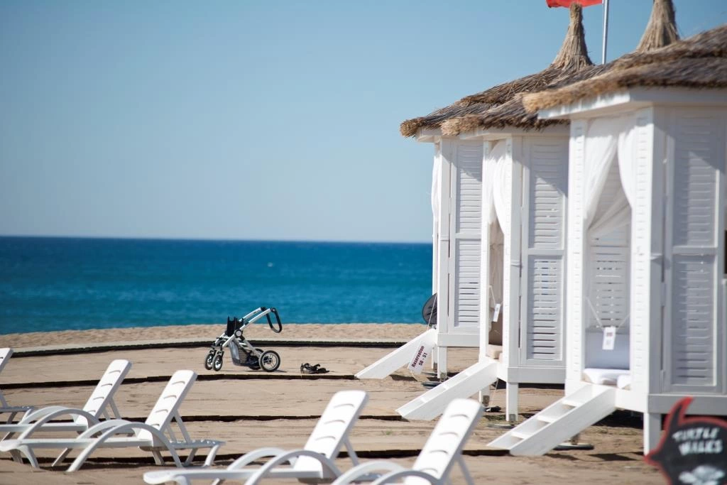 Піщано-гальковий пляж довжиною 450 м розташований приблизно в 400 м від головної будівлі.