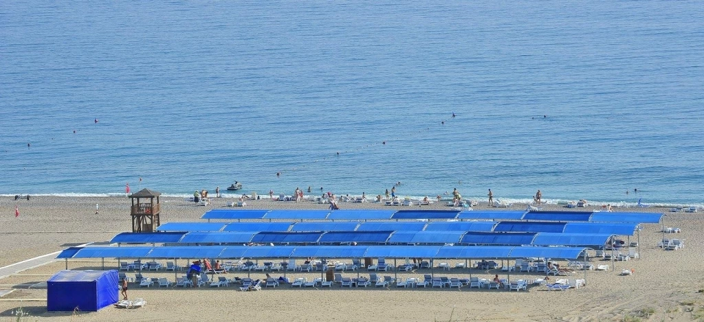 Власний піщано-гальковий пляж (з дрібною галькою) знаходиться в 50 метрах від готелю, через дорогу по підземному переходу. Протяжність пляжу — 150 м. Захід у море — пісок і галька. Пляжні рушники (по картці) — безкоштовно. Бар на пляжі — пиво, вино, холодні та гарячі напої (10.00-17.00).