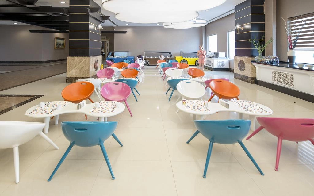 3 водні гірки. 1 критий басейн з прісною водою 60 м2 (СПА) та 2 відкритих дитячих басейни: дитячий басейн з прісною водою 60 м2 і дитячий басейн в аквапарку 180 м2. Міні-клуб для дітей з 4 до 12 років (10:00-12:30, 14:30-17:30), міні кінотеатр. Дитячі горщики (безкоштовно). Прокат дитячих колясок (платно). Дитячий ресторан «KIDDY» (на 24 особи) шве