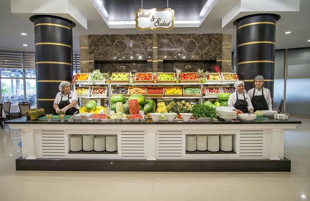 Цілодобова стійка реєстрації гостей, факс/ксерокопіювання (платно), Wi-Fi безкоштовно (на всій території готелю), послуги по прасуванню одягу (платно), room service: цілодобово (платно), магазини, 1 основний ресторан, є дієтичне харчування, 2 ресторани a la carte (турецький, італійський — за попереднім записом, за час проживання відвідування одного