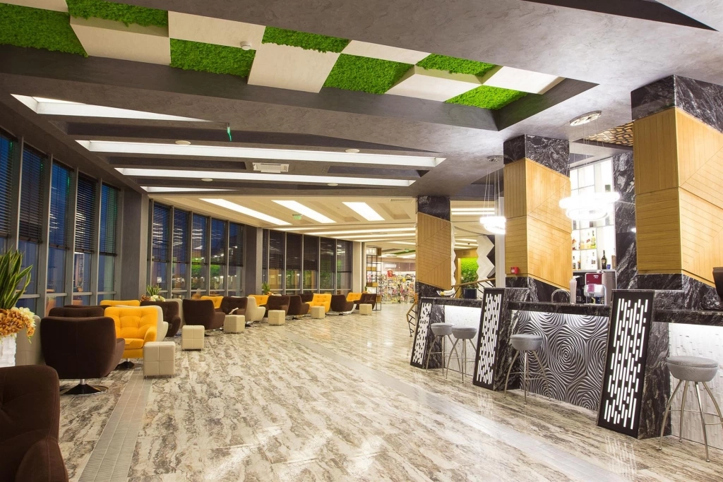 Цілодобова стійка реєстрації гостей, камера зберігання багажу, факс/ксерокопіювання, послуги по прасуванню одягу (платно), Wi-Fi в лобі (безкоштовно), магазини, 1 конференц-зал (з обладнанням, на 80 місць), 1 ресторан (на 500 чол.), 3 бари: лобі-бар (працює цілодобово, напої — платно), бар біля басейну і The Joy бар (включений в концепцію AI), 1 ві