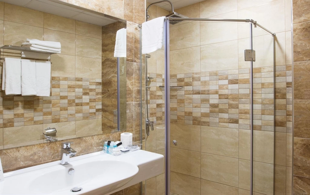 Кондиционер, телевизор, спутниковое ТВ, Wi-Fi (платно), телефон (платно), сейф (платно), холодильник, ванная комната (душевая кабина), фен, балкон. Уборка номера: ежедневно, смена полотенец: 3 раза в неделю, смена белья: 2 раза в неделю.