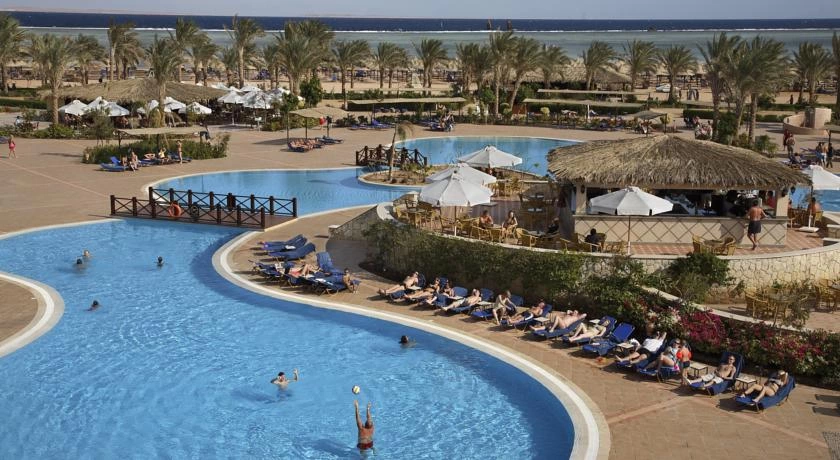 Ширина пляжної смуги 100 м, довжина — 250 м. Охорона. Вхід в море — корали, необхідна спеціальна взуття. Мілководді (500-600 метрів), є ділянка приблизно 50 метрів, розчищений від коралів (глибина 1,5). Свого понтона немає. Є понтон готелю Royal Albatros Moderna за додаткову плату.