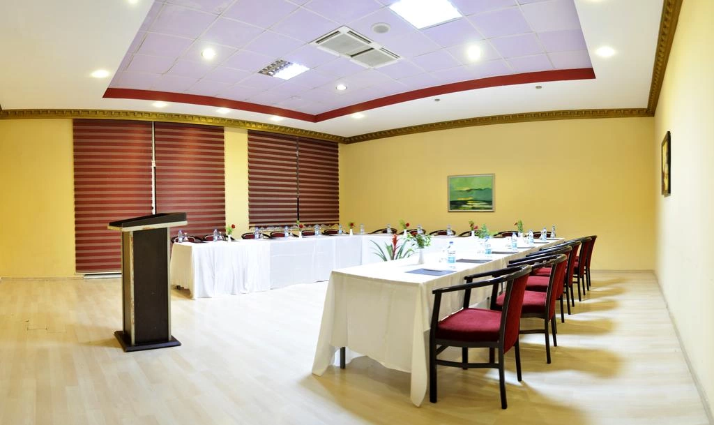 Wi-Fi (платно). Закритий і відкритий паркінг на 350 осіб, a'la Carte ресторан, лобі-бар, бар в саду біля аквапарку, бар в закритій дискотеці, бар у відкритій дискотеці, бар на пляжі. Відкритий басейн з гірками, 322 кв. м, 3 гірки. Відкритий релакс басейн, 126 кв. м. Конференц-зал на 100 осіб. Цілодобова стійка реєстрації гостей, зберігання бага