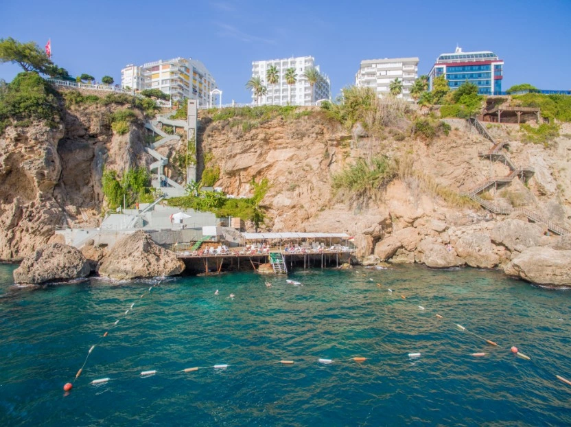 Власний скелястий пляж (платформа) знаходиться поруч з готелем. Довжина пляжу: 60 м. Пляжні рушники — безкоштовно. Бар на пляжі — безкоштовно.