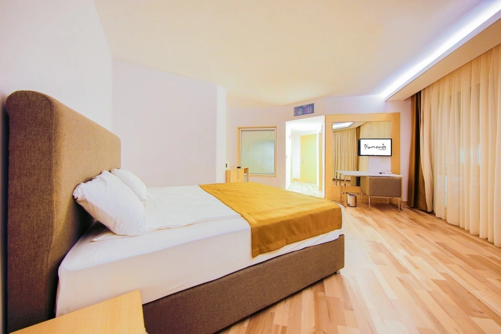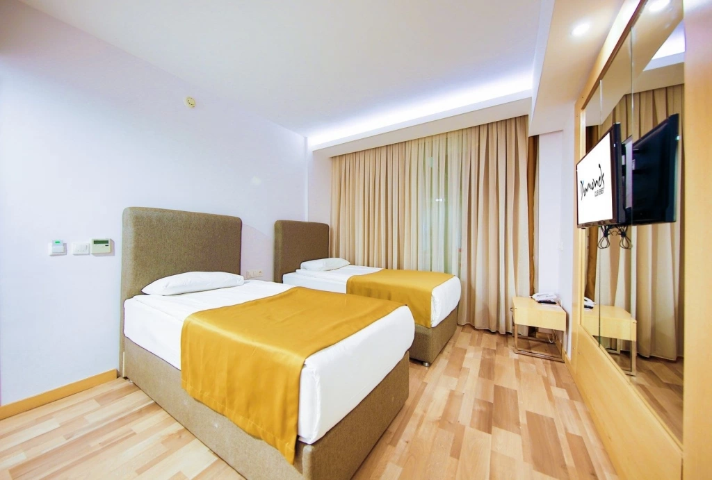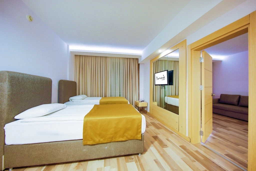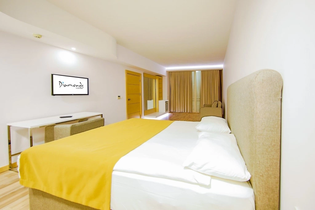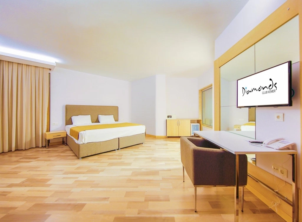 2 ресторану: 1 основний, 2 a la carte: 1 турецький ресторан, за попереднім записом, при проживанні мінімум 5 ночей відвідування ресторану 1 раз — безкоштовно, 1 рибний ресторан, 5 барів, 2 басейни (1 відкритий: 1100 м2, 1 критий з підігрівом), біля басейну парасольки, шезлонги, матраци, рушники (безкоштовно), магазини, 7 конференц-залів, ТБ-зал, Wi