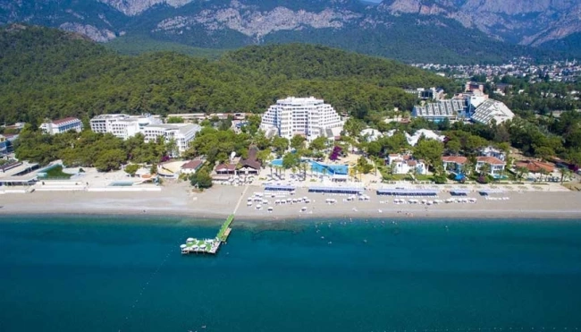 В 45 км от аэропорта г. Анталья, 10 км от г. Кемер, в п. Гейнюк.