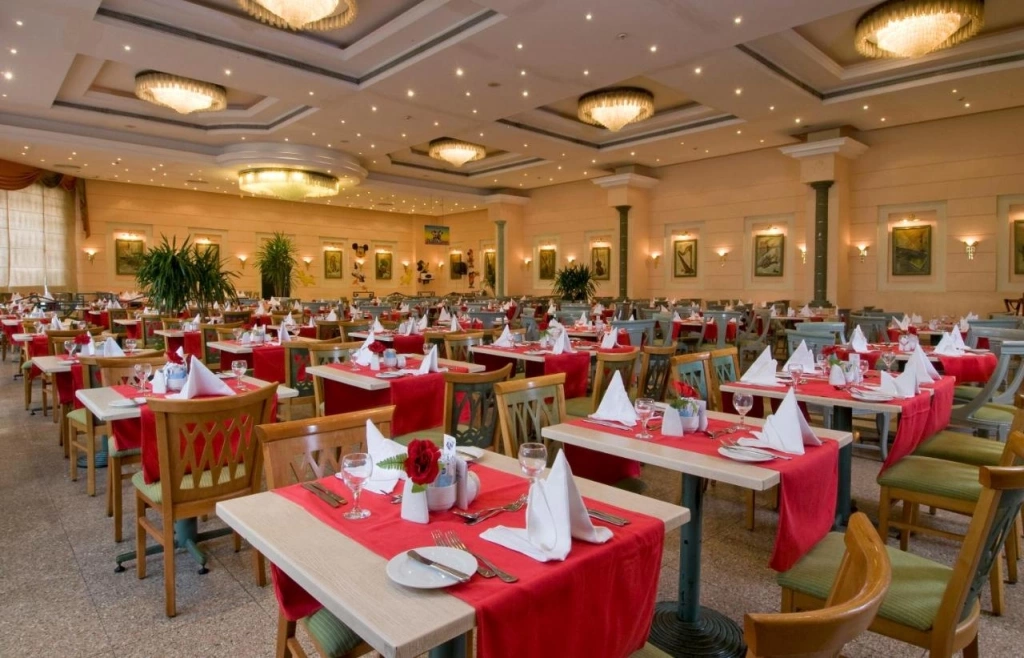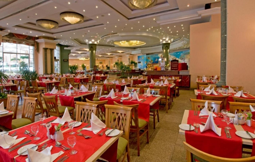 Ресторани: Основний ресторан l'opera – харчування по системі «Шведський стіл», міжнародна та східна кухня. Ресторан My Place – міжнародна кухня. Ресторан Pergola (обід: 13:00 – 15:00, вечеря: 19:30 – 22:00). Bedouin Tent (влітку: 15:00 – 1:00, взимку: 13:00 – 23:00). Ресторан Love Boat – страви з морепродуктів (19:00 – 22:00). Grill House (обід: 13