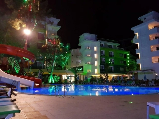 Пляж знаходиться в 150 м від готелю, через дорогу по підземному переходу. Протяжність пляжу становить 100 м. Курсує шатл на пляж, безкоштовно. Бар на пляжі. Душ, кабіна для переодягання. Вхід в море — камені .