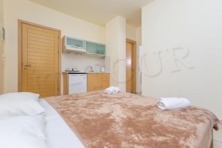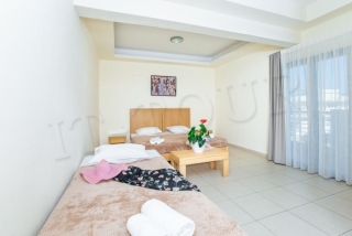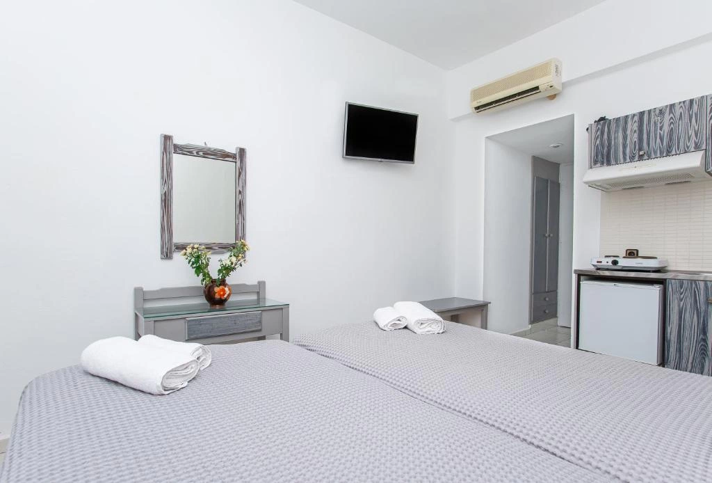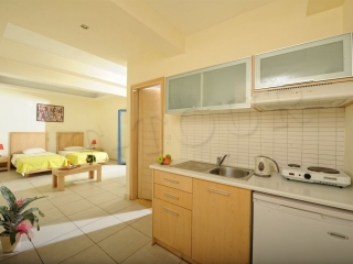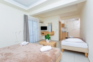 Кухонный уголок (электрическая плитка с 2-мя конфорками, электрочайник, посуда), кондиционер (за доплату), мини-холодильник, телевизор, бесплатный Wi-Fi интернет, ванная комната с душем и туалетом, сейф (за доплату), балкон/терраса. Уборка и замена полотенец 3 раза в неделю, замена постельного белья 2 раза в неделю.